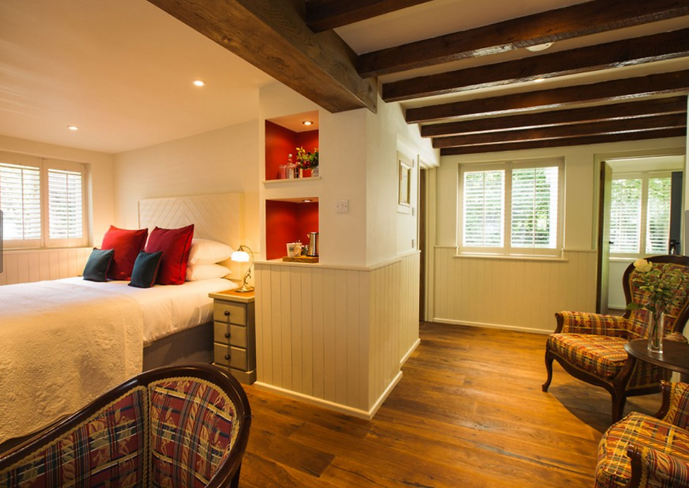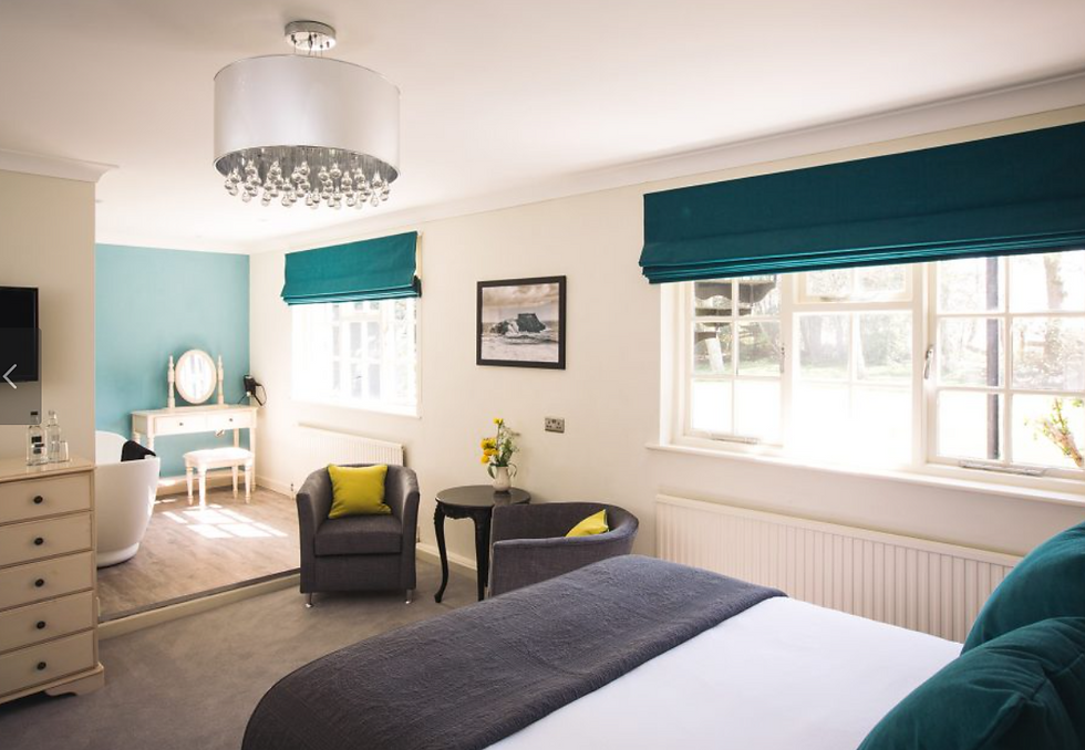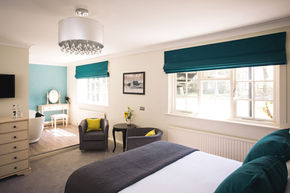 Positioned just meters from the main building, our Deluxe Coach House Room offers a tranquil and private retreat. This spacious room combines rustic charm with modern comfort, featuring beautiful wooden flooring and exposed timber beams that add warmth and character. Enjoy a restful night in the luxurious king-size bed while taking in peaceful garden views. The private en-suite boasts a classic roll-top bath and a separate shower cubicle, with plush bathrobes provided.